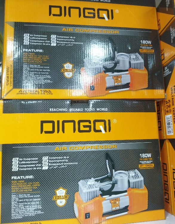 پمپ باد جفت کمپرسور برند دینگی 180وات فندکی باطری